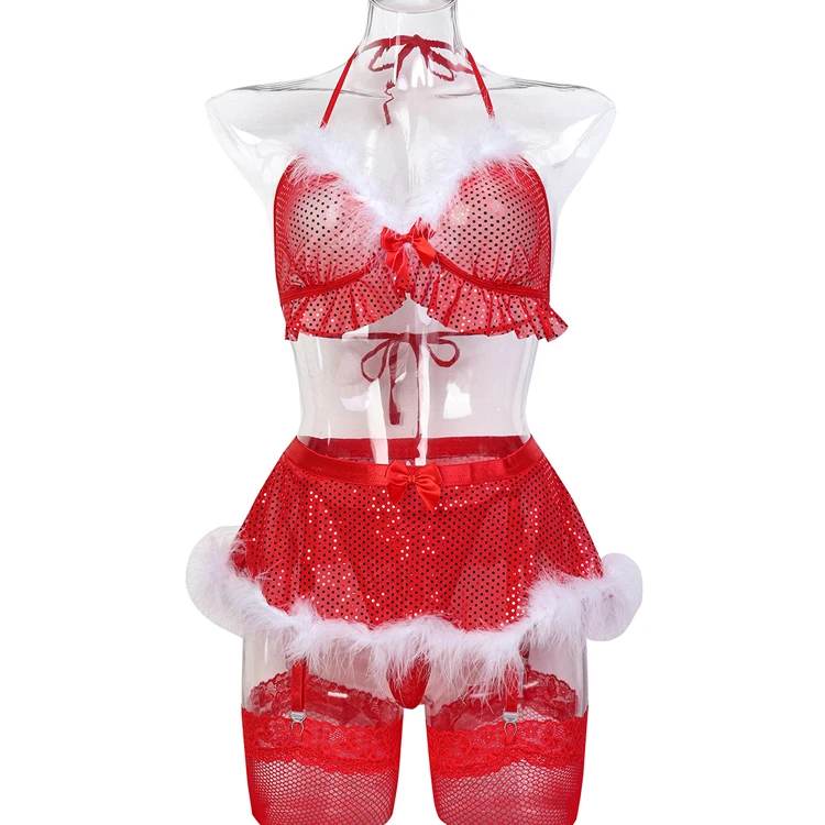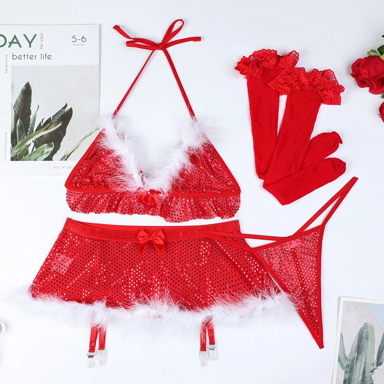 JENGS 2025 New Design Red Christmas Sexy Festival Erotic Lingerie Set Fashion Hot Sell Lovely Underwear Light Embroidery